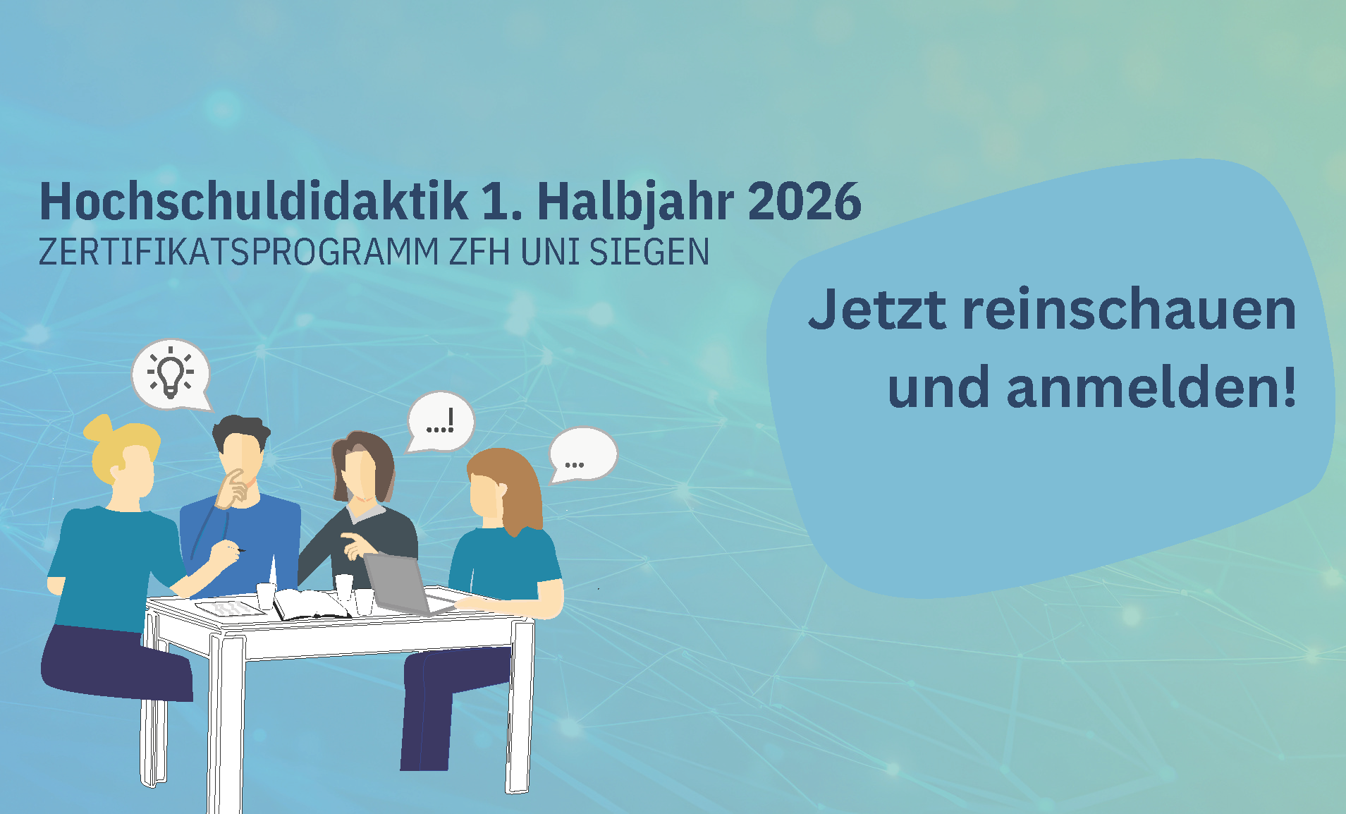 Hohe Lehrkompetenz von Lehrenden liegt im Interesse der Hochschule (Hochschulzukunftsgesetz NRW Artikel 1, §36 Absatz 2) und der Studierenden. Sie liegt aber auch im Interesse der Lehrenden selbst: sie trägt elementar zur eigenen Berufszufriedenheit bei und kann, sofern formale Nachweise darüber vorliegen, auch der Karriereplanung dienen. Die Universität Siegen unterstützt die hochschuldidaktische Qualifizierung ihrer Lehrenden durch ein zielgruppenorientiertes Angebot. Themenbezogene Workshops werden ergänzt um Hospitationen, kollegiale Beratung, professionelle Unterstützung etwa bei der Erstellung von Lehrportfolios. Mit diesem Angebot erschließt die Universität Siegen ihren Lehrenden die Möglichkeit, sowohl fachlich-didaktische als auch persönliche Kompetenzen zu erwerben und weiter zu entwickeln.